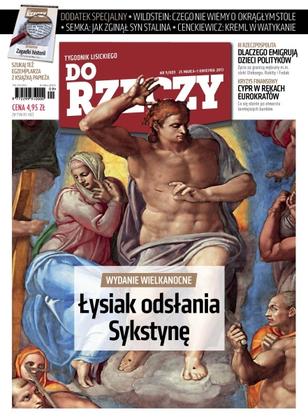 500 lat temu Michał Anioł skończył malować sklepienia najsłynniejszej kaplicy Watykanu; albo dialog, albo strajk – mówi Mariuszowi Staniszewskiemu przewodniczący NSZZ „Solidarność”; teologia wyzwolenia i jej ideały – wypaczone i wciągnięte w bieżącą politykę; jak umarł syna Stalina; tajemnica soboru; zagadka okrągłego stołu; dzieci PRL biorą Polskę – fragment wywiadu rzeki, jaki Piotr Gociek przeprowadził z dziennikarzem śledczym tygodnika „Do Rzeczy”; Cypr – ratunek przez rabunek; jak Samsung powiększa przewagę nad Apple; suknie z krainy czarów – za kreacje warte dziesiątki tysięcy dolarów ich wykonawcy dostają marne grosze.