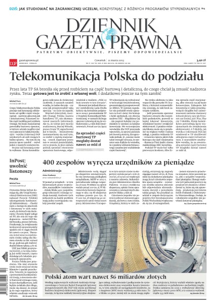 Jak studiować na zagranicznej uczelni, korzystając z różnych programów stypendialnych; przez lata TP SA broniła się przed rozbiciem na część hurtową i detaliczną, do czego chciał ją zmusić nadzorca rynku – teraz gotowa jest to zrobić z własnej woli i dodatkowo jeszcze na tym zarobić; w ponad 30 urzędach – w tym kierowanych przez wojewodów, marszałków i ministrów – działa blisko 400 zespołów, grup roboczych i różnego rodzaju komisji; prywatna firma InPost domaga się, aby Urząd Komunikacji Elektronicznej (UKE) nakazał Poczcie Polskiej udostępnienie konkurencji infrastruktury; polski atom wart nawet 56 miliardów złotych – według najnowszych wyliczeń Andrzeja Strupczewskiego z Centrum Badań Energetyki Jądrowej przygotowanych dla DGP tyle może pochłonąć budowa krajowej elektrowni jądrowej.