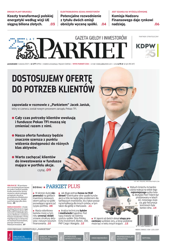 Największy w Polsce newsroom gospodarczy zbiera, analizuje i zgłębia dla Państwa najważniejsze informacje ze świata finansów. Codzienne wydanie „Parkietu”, sześć dni w tygodniu, to kilkadziesiąt artykułów o emitentach, instytucjach finansowych, gospodarce. To również opinie, felietony i wywiady z najważniejszymi ludźmi krajowej i globalnej finansjery.