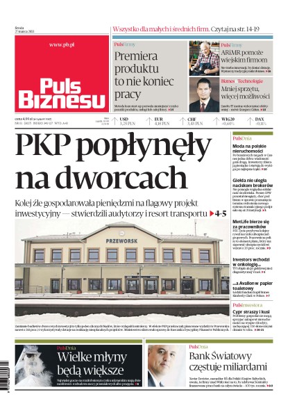 Kolej źle gospodarowała pieniędzmi na flagowy projekt inwestycyjny – stwierdzili audytorzy i resort transportu; PZU Życie przybywa kolejny rywal na rynku ubezpieczeń grupowych – pracownicze polisy to element plany, który ma zapewnić ubezpieczycielowi wzrost o 20 proc. rocznie; TFI objęło akcje giełdowej sieci diagnostycznej Voxel; problemy gospodarcze mogą sprzyjać zakupowi nieruchomości na Cyprze.