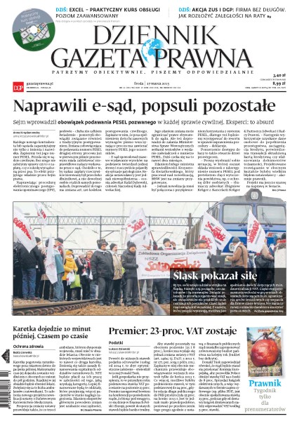 Dziennik Gazeta Prawna – codziennie obiektywne i rzetelne informacje z kraju i ze świata. Piszemy o tym, co dziś ważne i odpowiadamy na Wasze pytania – szczególnie te związane z obecnymi wyzwaniami tj. pandemia, praca zdalna. Na bieżąco wyjaśniamy zmieniające się przepisy. Wspieramy się wyjaśnieniami ministerstw i urzędów. Pomagamy unikać błędów i ostrzegamy, jakie są kary. Ponadto w każdy piątek specjalne magazynowe wydanie Dziennika Gazety Prawnej w całości z tekstami społeczno-ekonomicznymi.