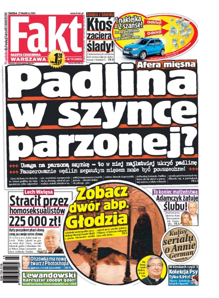 Uwaga na parzoną szynkę – to w niej najłatwiej ukryć padlinę; z internetowych serwisów ktoś usuwa informacje i zdjęcia o Samirze S.; wczoraj na Śląsku odbył się strajk, w którym wzięło udział 100 tys. ludzi; małżeństwo Piotra Adamczyka z Katie Rozz prawie się rozpadło; zmarł aktor Jerzy Nowak.