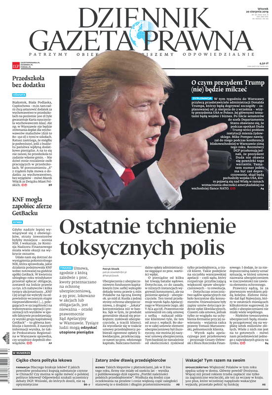 Gazetę wzbogacają praktyczne dodatki dla specjalistów, niedostępne w kioskach: Księgowość i Podatki, Rachunkowość i Audyt, Firma i Prawo, Samorząd i Administracja, Prawnik, Kadry i Płace, Ubezpieczenia i Świadczenia. NOWOŚĆ 2021 r. dodatki Biuro Rachunkowe i Księgowość Budżetowa (dostępne raz w miesiącu). Dodatkowo publikujemy wyjątkowo cenione przez Czytelników specjalne dodatki dotyczące najważniejszych zmian, nowych rozwiązań, na gorąco odpowiadamy na pytania. Piszemy o pracy zdalnej, o tarczach antykryzysowych, o nowych przepisach do walki z epidemią, o sposobach walki z zatorami płatniczymi i nowych obowiązkach pracodawców. Zapewniamy bezpieczeństwo w stosowaniu zmieniającego się prawa.
