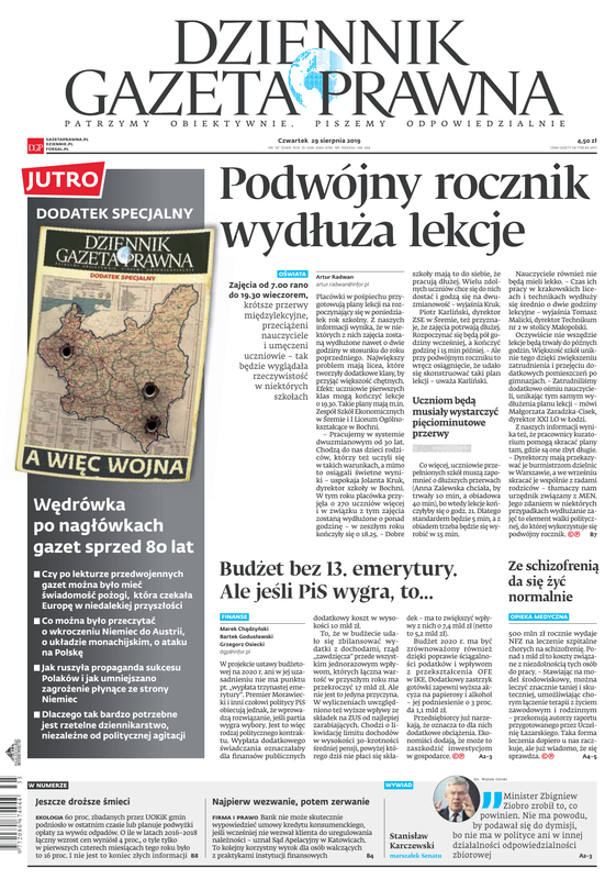 Gazetę wzbogacają praktyczne dodatki dla specjalistów, niedostępne w kioskach: Księgowość i Podatki, Rachunkowość i Audyt, Firma i Prawo, Samorząd i Administracja, Prawnik, Kadry i Płace, Ubezpieczenia i Świadczenia. NOWOŚĆ 2021 r. dodatki Biuro Rachunkowe i Księgowość Budżetowa (dostępne raz w miesiącu). Dodatkowo publikujemy wyjątkowo cenione przez Czytelników specjalne dodatki dotyczące najważniejszych zmian, nowych rozwiązań, na gorąco odpowiadamy na pytania. Piszemy o pracy zdalnej, o tarczach antykryzysowych, o nowych przepisach do walki z epidemią, o sposobach walki z zatorami płatniczymi i nowych obowiązkach pracodawców. Zapewniamy bezpieczeństwo w stosowaniu zmieniającego się prawa.