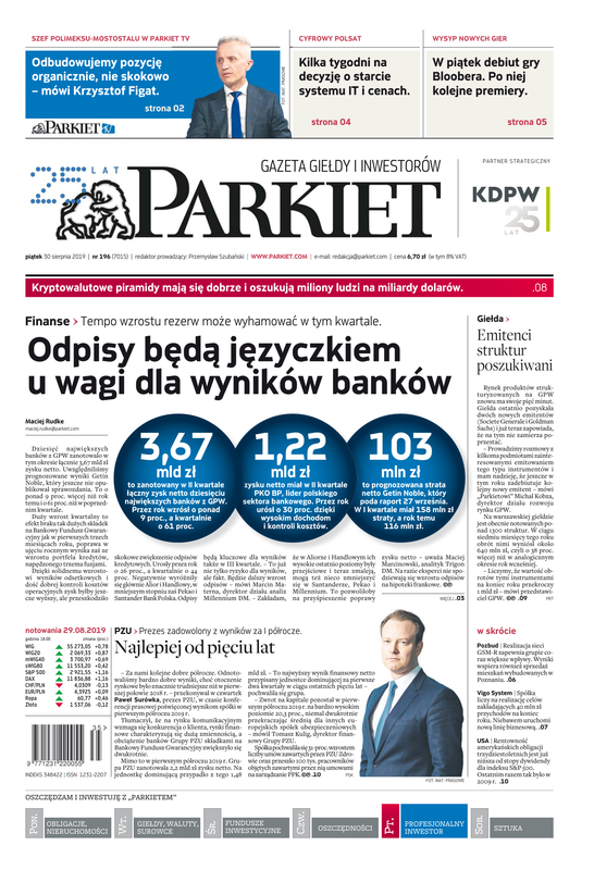 Największy w Polsce newsroom gospodarczy zbiera, analizuje i zgłębia dla Państwa najważniejsze informacje ze świata finansów. Codzienne wydanie „Parkietu”, sześć dni w tygodniu, to kilkadziesiąt artykułów o emitentach, instytucjach finansowych, gospodarce. To również opinie, felietony i wywiady z najważniejszymi ludźmi krajowej i globalnej finansjery.