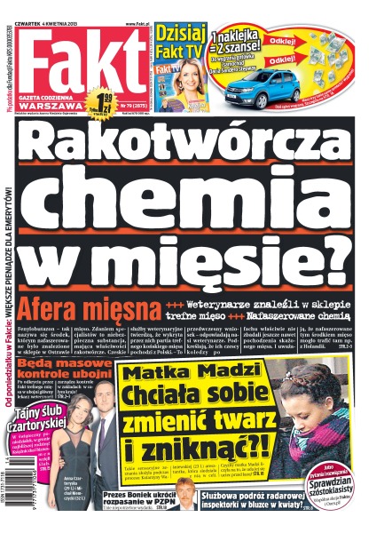 Afera mięsna – weterynarze znaleźli w sklepie trefne mięso nafaszerowane chemią, będą masowe kontrole ubojni; matka Madzi chciała zmienić sobie twarz i zniknąć; tajny ślub Czartoryskiej; prezes Boniek ukrócił rozpasanie w PZPN; służbowa podróż radarowej inspektorki w bluzce w kwiaty.
