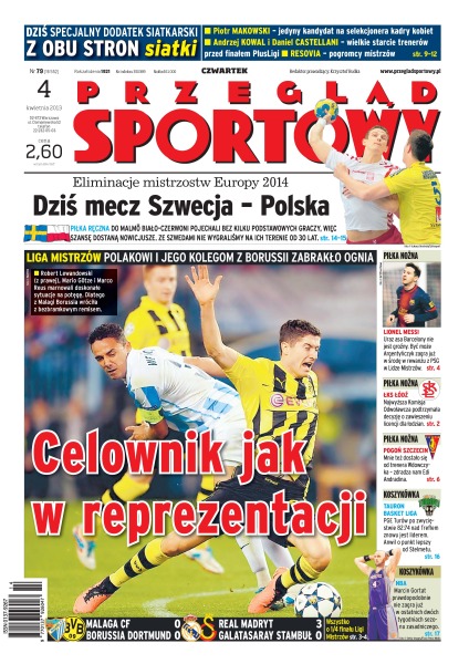 Malaga–Borussia 0:0 – mistrzowie Niemiec mieli wiele okazji, by kwestię awansu rozstrzygnąć już wczoraj; królewska zaliczka piłkarzy Jose Mourinho; Chelsea i Tottenham walczą nie tylko o europejski puchar; w poniedziałek zarząd PZPS wybierze trenera Delecty Bydgoszcz na selekcjonera żeńskiej kadry; polscy szczypiorniści zagrają ze Szwecją – z tym rywalem na jego terenie nie wygraliśmy od trzydziestu lat.