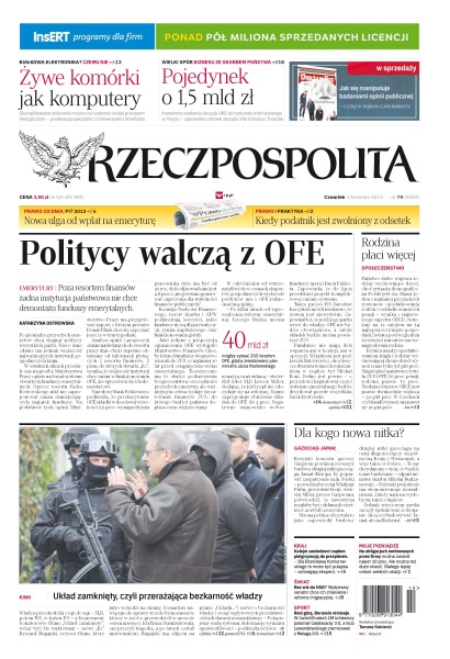 Politycy walczą z OFE – poza resortem finansów żadna instytucja państwowa nie chce demontażu funduszy emerytalnych; nowa ulga od wpłat na emeryturę; kiedy podatnik jest zwolniony z odsetek; skomplikowane obliczenia można też wykonać dzięki procesom biologicznym – przekonują specjaliści z Uniwersytetu Stanforda; inwestorzy zaskarżą decyzje UKE do trybunału arbitrażowego w Paryżu – zapowiada członek zarządu Sferii Dariusz Trzeciak.