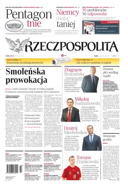 Gazeta „Izwiestia” twierdzi, że Polska zażądała 10 hektarów ziemi pod pomnik katastrofy smoleńskiej, ale to nieprawda; roszczenia utrudniają inwestycje; jak rozliczyć nadpłatę w najmie; Departament Obrony przedstawił projekt oszczędności w wydatkach zbrojeniowych USA; Środowisko Europy Plus szuka politycznego lidera na miejsce Aleksandra Kwaśniewskiego; Skarb Państwa chce wyższych dywidend z kontrolowanych spółek.