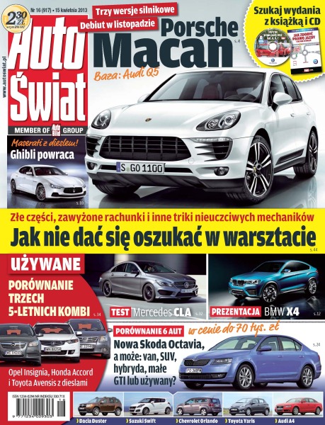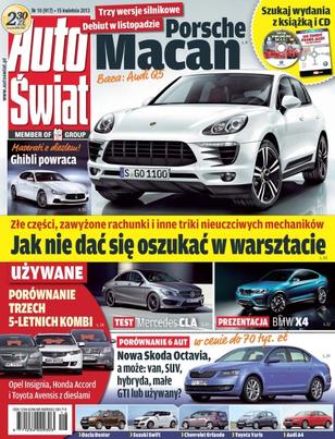 Porsche Macan i konkurenci – niemieccy producenci aut marek premium szykują ofensywę niewielkich SUV-ów; Peugeot 208 GTi – pierwsza jazda małym sportowcem spod znaku lwa; Maserati Ghibli – prezentacja pięknej limuzyny klasy wyższej, mniejszej siostry Quattroporte; BMW X4 – koncept mniejszego SUV-a w stylu X6; Audi S3 i RS6, Ford Fusion Hybrid – wrażenia z jazd nowymi odmianami znanych modeli; Mercedes CLA w wersji CLA 200 z benzynowym silnikiem 1.6; Top 10: małe auta – ranking maluchów za 5 tys. zł.