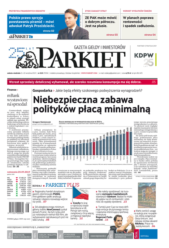Największy w Polsce newsroom gospodarczy zbiera, analizuje i zgłębia dla Państwa najważniejsze informacje ze świata finansów. Codzienne wydanie „Parkietu”, sześć dni w tygodniu, to kilkadziesiąt artykułów o emitentach, instytucjach finansowych, gospodarce. To również opinie, felietony i wywiady z najważniejszymi ludźmi krajowej i globalnej finansjery.