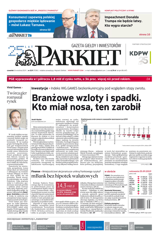 Największy w Polsce newsroom gospodarczy zbiera, analizuje i zgłębia dla Państwa najważniejsze informacje ze świata finansów. Codzienne wydanie „Parkietu”, sześć dni w tygodniu, to kilkadziesiąt artykułów o emitentach, instytucjach finansowych, gospodarce. To również opinie, felietony i wywiady z najważniejszymi ludźmi krajowej i globalnej finansjery.