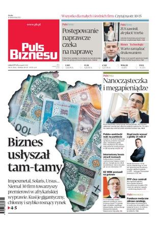 Biznes usłyszał tam-tamy – Impexmetal, Solaris, Ursus – niemal 30 firm towarzyszy premierowi w afrykańskiej wyprawie – kusi je gigantyczny, chłonny i szybko rosnący rynek; postępowanie naprawcze czeka na naprawę – polskie firmy upadają, bo niechętnie się restrukturyzują – prawo nie sprzyja procesom naprawczym; nanocząsteczka i megapieniądze – firma NanoVelos, którą kieruje Dariusz Smoleń, chce skomercjalizować rewolucyjne odkrycie polskich naukowców; PPP chce centrali – bez rządowej agendy, która będzie wspierać i koordynować projekty PPP, rynek nie nabierze rozpędu; fundusze medyczne zdrowo zarabiają – rekordzista na inwestycjach w medycynę od początku roku zyskał aż 24 procent – do wyboru jest już sześć podobnych produktów.
