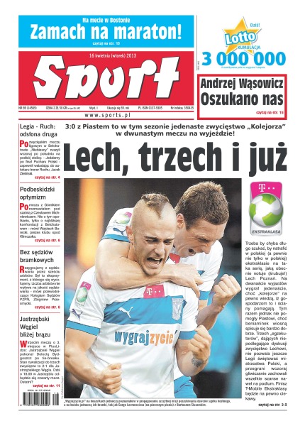 3:0 z Piastem to w tym sezonie jedenaste zwycięstwo „Kolejorza” w dwunastym meczu na wyjeździe; Cristiano Ronaldo poprowadził Real Madryt do ostatniego zwycięstwa na stadionie San Mames; kiedy Michał Kubiak odbierał statuetkę MVP tego meczu z rąk komisarza zawodów Jerzego Kajzera, część kibiców zgromadzonych na trybunach zaczęła gwizdać; bez Kobe’ego Bryanta Los Angeles Lakers też potrafią wygrywać – pokonując San Antonio Spurs zrobili ogromny krok w kierunku play offu; Azoty - rywal zabrzan w play offie – przetarł się w Pucharze Polski, ale stracił zawodnika; o blaskach i cieniach katowickiego turnieju mówi dyrektor tej imprezy i Akademii Tenisowej Karoliny Woźniackiej.