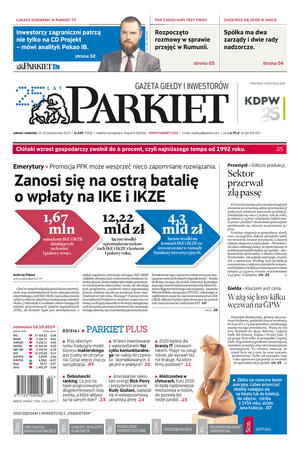 Gazeta Giełdy i Inwestorów Parkiet przyspiesza publikację e-wydania. Od poniedziałku, już od godz. 20.00, można kupić i przeczytać e-wydanie Parkietu, które w wersji papierowej ukaże się dopiero następnego dnia. Parkiet jest więc najświeższą gazetą finansową w Polsce.