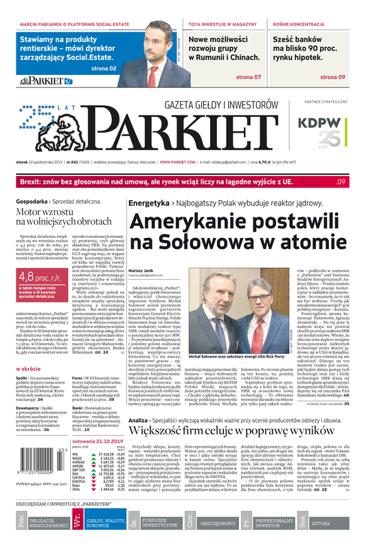 Największy w Polsce newsroom gospodarczy zbiera, analizuje i zgłębia dla Państwa najważniejsze informacje ze świata finansów. Codzienne wydanie „Parkietu”, sześć dni w tygodniu, to kilkadziesiąt artykułów o emitentach, instytucjach finansowych, gospodarce. To również opinie, felietony i wywiady z najważniejszymi ludźmi krajowej i globalnej finansjery.