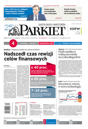 Największy w Polsce newsroom gospodarczy zbiera, analizuje i zgłębia dla Państwa najważniejsze informacje ze świata finansów. Codzienne wydanie „Parkietu”, sześć dni w tygodniu, to kilkadziesiąt artykułów o emitentach, instytucjach finansowych, gospodarce. To również opinie, felietony i wywiady z najważniejszymi ludźmi krajowej i globalnej finansjery.