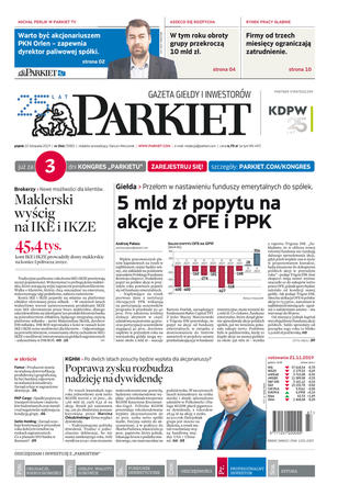 Gazeta Giełdy i Inwestorów Parkiet przyspiesza publikację e-wydania. Od poniedziałku, już od godz. 20.00, można kupić i przeczytać e-wydanie Parkietu, które w wersji papierowej ukaże się dopiero następnego dnia. Parkiet jest więc najświeższą gazetą finansową w Polsce.
