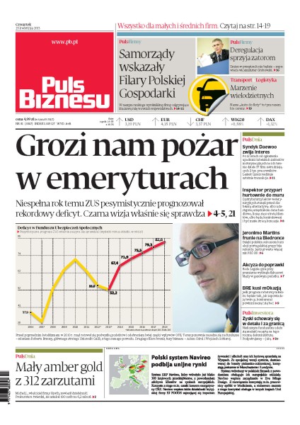 Niespełna rok temu ZUS pesymistycznie prognozował rekordowy deficyt – czarna wizja właśnie się sprawdza; dystrybutorzy leków weterynaryjnych udostępnią urzędnikom dane handlowe albo będą kontrolowani i być może stracą koncesje; dzięki polskim sukcesom kurs akcji Jeronimo Martins bije rekordy; Rada Legislacyjna przy premierze wytknęła fiskusowi błędy w gazowym podatku.