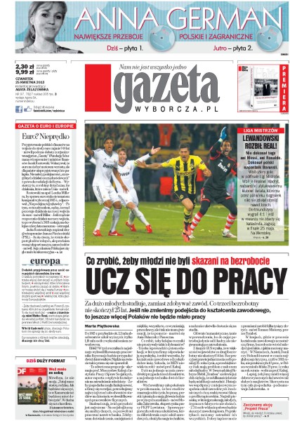 Jeśli nie zmienimy podejścia do kształcenia zawodowego, to jeszcze więcej Polaków nie będzie miało pracy; rząd nie wycofa się ze zmian w kodeksie pracy - „S” odpowiada referendami strajkowymi, planami manifestacji i jesienią oburzonych; coraz mniej młodych mężczyzn chce być księżmi, a jeszcze większe kłopoty mają zakony żeńskie; dziś mija 60. rocznica opublikowania pracy opisującej strukturę DNA.