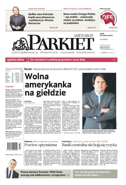 Akcjonariusze producenta alkoholi CEDC zostali pozostawieni samym sobie; spółka Jana Kulczyka kupiła poszukiwawczo-wydobywczy Winstar Resources; nowa marka Orange Polska, nju.mobile, zaskoczyła niskim ryczałtem; rozmowa z Maciejem Bombolem, prezesem Axa TFI, doradcą inwestycyjnym z licencją nr 3.