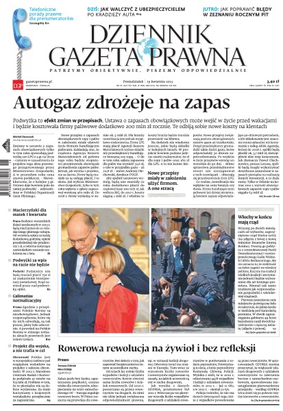 Dziennik Gazeta Prawna – codziennie obiektywne i rzetelne informacje z kraju i ze świata. Piszemy o tym, co dziś ważne i odpowiadamy na Wasze pytania – szczególnie te związane z obecnymi wyzwaniami tj. pandemia, praca zdalna. Na bieżąco wyjaśniamy zmieniające się przepisy. Wspieramy się wyjaśnieniami ministerstw i urzędów. Pomagamy unikać błędów i ostrzegamy, jakie są kary. Ponadto w każdy piątek specjalne magazynowe wydanie Dziennika Gazety Prawnej w całości z tekstami społeczno-ekonomicznymi.