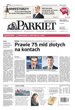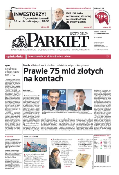Na koniec 2012 r. spółki z warszawskiej giełdy zgromadziły blisko 750 mld zł gotówki; rozmowa z Krzysztofem Lewandowskim, prezesem Pioneer Pekao TFI i przewodniczącym rady IZFiA; amerykański PKB wyniósł w pierwszym kwartale 2013 r. mniej, niż oczekiwano.