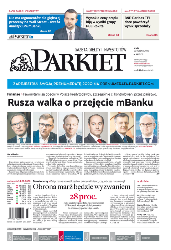 Największy w Polsce newsroom gospodarczy zbiera, analizuje i zgłębia dla Państwa najważniejsze informacje ze świata finansów. Codzienne wydanie „Parkietu”, sześć dni w tygodniu, to kilkadziesiąt artykułów o emitentach, instytucjach finansowych, gospodarce. To również opinie, felietony i wywiady z najważniejszymi ludźmi krajowej i globalnej finansjery.