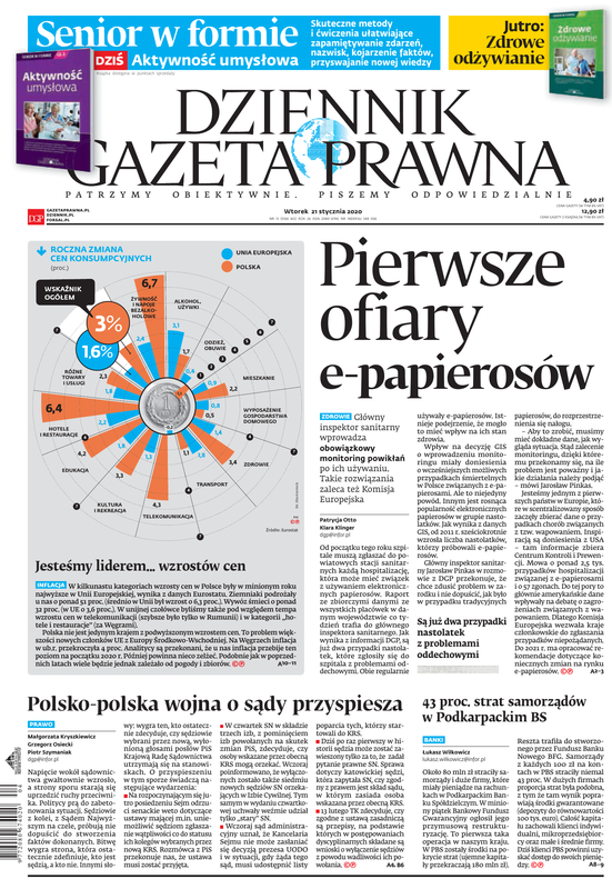 Gazetę wzbogacają praktyczne dodatki dla specjalistów, niedostępne w kioskach: Księgowość i Podatki, Rachunkowość i Audyt, Firma i Prawo, Samorząd i Administracja, Prawnik, Kadry i Płace, Ubezpieczenia i Świadczenia. NOWOŚĆ 2021 r. dodatki Biuro Rachunkowe i Księgowość Budżetowa (dostępne raz w miesiącu). Dodatkowo publikujemy wyjątkowo cenione przez Czytelników specjalne dodatki dotyczące najważniejszych zmian, nowych rozwiązań, na gorąco odpowiadamy na pytania. Piszemy o pracy zdalnej, o tarczach antykryzysowych, o nowych przepisach do walki z epidemią, o sposobach walki z zatorami płatniczymi i nowych obowiązkach pracodawców. Zapewniamy bezpieczeństwo w stosowaniu zmieniającego się prawa.