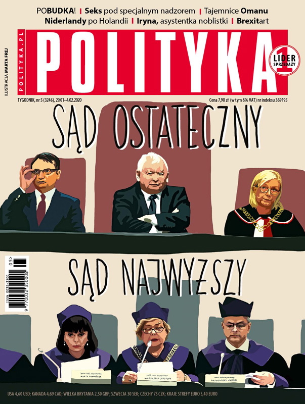 Kompletny chaos, który przewidywano jako skutek ataku PiS na wymiar sprawiedliwości, właśnie zapanował; czy wybór Borysa Budki wystarczy, aby podźwignąć omszałą, zużytą wyborczymi porażkami partię i dodać jej powabu; prawo niepełnosprawnych do intymności; śmierć sułtana Omanu Kabusa to ogromna strata dla Bliskiego Wschodu; kim jest Iryna Wikyrczak, asystentka Olgi Tokarczuk; brytyjska kultura próbuje oddać skalę chaosu, niepokoju i wstydu w swoim kraju, żegnając się z Europą zupełnie nie po angielsku.