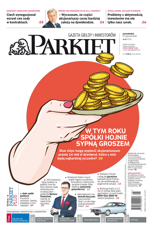 Największy w Polsce newsroom gospodarczy zbiera, analizuje i zgłębia dla Państwa najważniejsze informacje ze świata finansów. Codzienne wydanie „Parkietu”, sześć dni w tygodniu, to kilkadziesiąt artykułów o emitentach, instytucjach finansowych, gospodarce. To również opinie, felietony i wywiady z najważniejszymi ludźmi krajowej i globalnej finansjery.