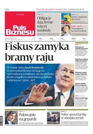 Fiskus zamyka bramy raju – w wojnie, którą Jacek Rostowski wypowiedział firmom stosującym optymalizację podatkową, nie ma pardonu – koniec z legalnym obniżaniem podatków i sielanką na Cyprze; obligacje dają firmie więcej swobody – chociaż ten sposób finansowania jest zwykle droższy niż kredyt bankowy, to rośnie jego popularność; roboty niegroźne dla etatów – nowoczesne maszyny sprawiają, że powstaje więcej miejsc pracy; Wittchenowi zabrakło galanterii – właściciel skórzanej marki nie zachował się po dżentelmeńsku, sprzedając VIP Style — uważają dostawcy, wobec których zadłużona spółka ma zobowiązania; wyłudzone miliony znikły jak kamfora – na sądową wokandę trafiła sprawa byłej agentki ubezpieczeniowej, która — zdaniem prokuratury — pod szyldem Avivy oszukała ponad 90 osób; pieniądze zwiążą naukę z biznesem – rząd ma dla polskich uczelni i przedsiębiorców dużą marchewkę — 10 mld EUR, żeby po nią sięgnąć, muszą pójść na współpracę.