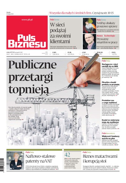 Publiczne przetargi topnieją – choć zleceń przybyło, ich wartość spadła — wynika z danych Urzędu Zamówień Publicznych – Polsce grozi powrót do poziomu sprzed boomu; w sieci podążaj za swoimi klientami – dziś nawet najmniejsza firma nie może sobie pozwolić na nieobecność w internecie; YetiPay obsłuży groszowe sprawy – mikropłatności to przyszłość internetu; prywatny smartfon w pracy – nowy trend wymaga lepszych zabezpieczeń; naciągacze z sieci uwzięli się na MNI – oszust nakłaniający do otwarcia konta widma, na które później wyłudza pożyczkę, podszywa się pod menedżera giełdowej spółki; pirackie e-booki posłużą za przynętę – dystrybutorzy tradycyjnych książek zamiast pod prąd zaczynają płynąć razem z rynkiem, sprzedając e-booki; Protektor ma z czego wybierać – producent obuwia ochronnego spodziewa się więcej niż dziesięciu inwestorów branżowych zainteresowanych przejęciem nad nim kontroli; Exatel ze zwierzyny staje się myśliwym – operator od zawsze na sprzedaż teraz sam chce przejmować – na dobry początek zamiata własne podwórko.