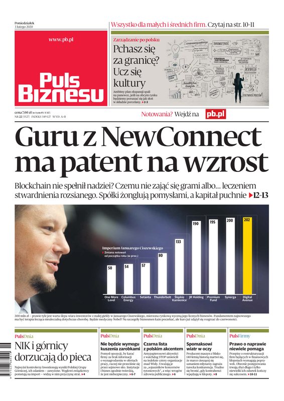 Gazetę tworzymy z myślą o wspieraniu przedsiębiorców. Prenumeratę kupują nie tylko gigantyczne spółki, ale również przedsiębiorcy z małych i średnich firm.