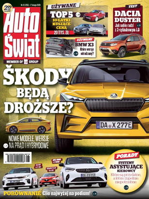 NOWE AUTA: nowości Skody; Skoda Vision IN; hybrydowe Peugeoty 3008 i 508; nowe Volkswageny; hybrydowe Fiaty 500 i Panda; informacje ze świata motoryzacji; TESTY: Kia Rio, Opel Corsa i Renault Clio; Nissan Qashqai; Audi SQ8; Peugeot 2008; Porsche Cayenne Turbo; Dacia Duster; PORADY: wielki test systemów asystujących; UŻYWANE: BMW X3 (2010-17); top 5 - auta z atrakcyjną relacją wieku i ceny; FASCYNACJE: Audi e-tronem przez Alpy; STAŁE POZYCJE: z archiwum „Auto Świata”; absurdy oraz kronika tygodnia.