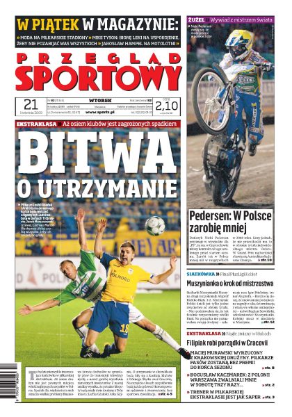 Zostałem zwolniony trzy razy - rozmowa z trenerem Kaczmarkiem; Howard Webb nie będzie arbitrem tegorocznego finału Remes Pucharu Polski; osiem klubów do ostatniej kolejki stoczy wielki bój o pozostanie w ekstraklasie; Łukasz Fabiański już dziś będzie miał okazję do rehabilitacji za nieudany występ w Pucharze Anglii; wywiad z Pedersenem; zespół Roberta Kubicy już na początku sezonu przegrywa wyścig technologiczny. Dodatek dla fanów Lecha.