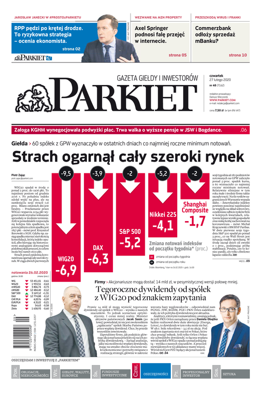 Największy w Polsce newsroom gospodarczy zbiera, analizuje i zgłębia dla Państwa najważniejsze informacje ze świata finansów. Codzienne wydanie „Parkietu”, sześć dni w tygodniu, to kilkadziesiąt artykułów o emitentach, instytucjach finansowych, gospodarce. To również opinie, felietony i wywiady z najważniejszymi ludźmi krajowej i globalnej finansjery.