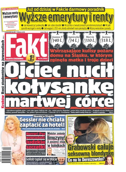 Wstrząsające kulisy pożaru domu na Śląsku, w którym zginęła matka i troje dzieci; dla dziecka polityka miejsce znalazło się od ręki – zwykły rodzic został odesłany z kwitkiem; co robi polityk PiS, Adam Hofman, kiedy zepsuje mu się samochód – wymienia go na lepszy model; szokujące wyznanie gitarzysty Dody; Magda Gessler nie chciała zapłacić za hotel w Słupsku; Legia nie potrzebuje Ljuboji; przed sobotnim meczem z Legią przy Bułgarskiej zamykają treningi; Kiessling wyprzedził Lewandowskiego; Gollob szaleje w błocie.