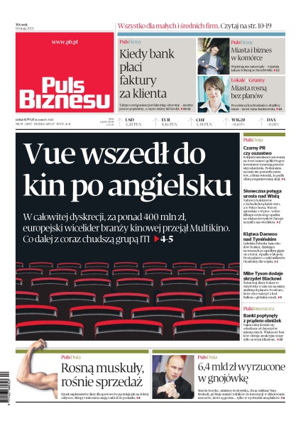 Kiedy bank płaci faktury za klienta; w całkowitej dyskrecji, za ponad 400 mln zł, europejski wicelider branży kinowej przejął Multikino – co dalej z coraz chudszą grupą ITI; kolejni kontrahenci notowanej na NewConnect spółki Progres Investment wysuwają przeciw niej oskarżenia; nabywcy kolektorów z Zachodu liczą każde euro, a w Polsce hossa; lubelska Fabryka Samochodów Honker, działająca na terenach po upadłym gigancie z Korei, wpadła w kłopoty – prosi państwo o setki milionów i kontrakty dla wojska; Mike Tyson dodaje skrzydeł Blackowi; rynek suplementów diety dla sportowców pęcznieje jak na dobrej odżywce – sklepy i mleczarze mają 1 mld zł do podziału.
