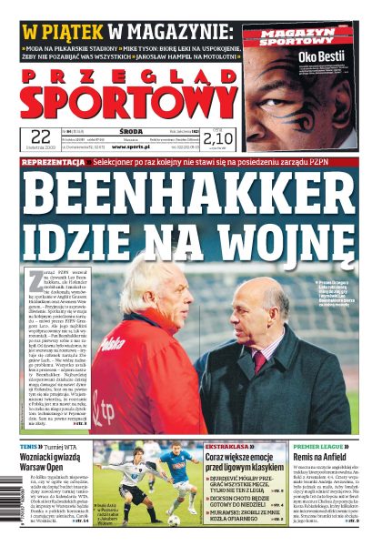 Zrobili ze mnie koła ofiarnego - wywiad z Maciejem Murawskim; Leo Beenhakker mimo wezwania nie pojawi się dziś na posiedzeniu PZPN; jeśli nic się nie zmieni, Cracovia nie będzie miała szans na utrzymanie w ekstraklasie; Fabiański puścił cztery bramki, ale swojego występu nie musi się wstydzić; Kubica musi więcej ryzykować, ponieważ ma wolny bolid; wywiad z Gregiem Hancockiem.