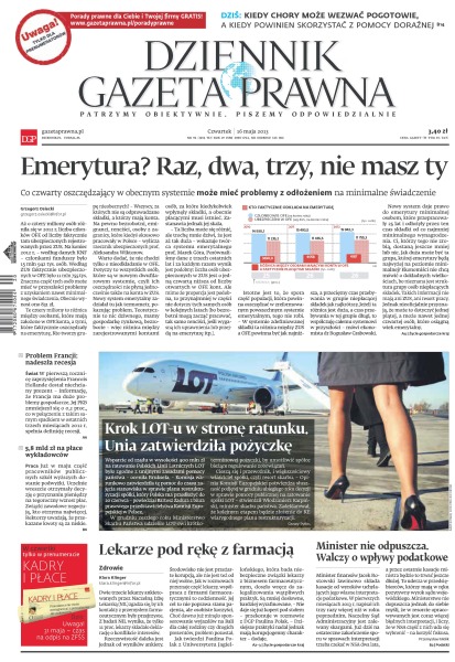 Kiedy chory może wezwać pogotowie, a kiedy powinien skorzystać z pomocy doraźnej; co czwarty oszczędzający w obecnym systemie może mieć problemy z odłożeniem na minimalne świadczenie; w pierwszą rocznicę zaprzysiężenia Francois Hollande dostał niechciany prezent – informację, że Francja ma duże problemy gospodarcze; już w maju część pracowników publicznych szkół wyższych dostanie podwyżki – uczelnie wreszcie otrzymały decyzję o przyznaniu pieniędzy na tegoroczny wzrost płac; wsparcie od rządu w wysokości 400 mln zł na ratowanie Polskich Linii Lotniczych LOT było zgodne z unijnymi zasadami pomocy państwa – oceniła Bruksela.