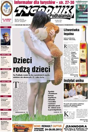 Dzieci rodzą dzieci – na Podhalu rośnie liczba nastoletnich matek, niektóre nie ukończyły 15. roku życia; Tatry – wysłał zdjęcie po zdobyciu Rysów, a potem ślad po nim zaginął; Nowy Targ – bez lekarzy oddział internistyczny i kardiologiczny – medycy solidarnie zrezygnowali z pracy; Marek Jackowski zanim wyjechał do Włoch, przez 17 lat mieszkał pod Tatrami; cenne trofea archeologów, znalezione na nowotarskim rynku, trafią do Muzeum Podhalańskiego w ratuszu; instytut uniku – nie zeszli z placu budowy szpitalnego pawilonu, gdy splajtował główny wykonawca – teraz żałują; Litworówka legalna – Łącko ma śliwowicę, Podhale - litworówkę; prawne kruczki – nie pomogły przywrócić ważności rabczańskiego planu zagospodarowania przestrzennego; Witów – chcesz dojechać do swego pola, to fruwaj jak ptak; Bukowina – na skrzypcach Andrzeja Czernika Gracki będą grali najlepsi studenci Uniwersytetu Muzycznego w Budapeszcie.