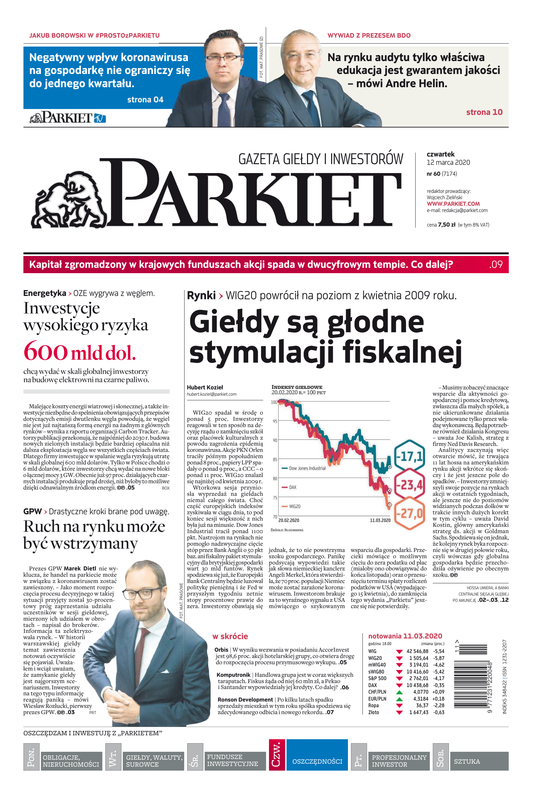 Największy w Polsce newsroom gospodarczy zbiera, analizuje i zgłębia dla Państwa najważniejsze informacje ze świata finansów. Codzienne wydanie „Parkietu”, sześć dni w tygodniu, to kilkadziesiąt artykułów o emitentach, instytucjach finansowych, gospodarce. To również opinie, felietony i wywiady z najważniejszymi ludźmi krajowej i globalnej finansjery.