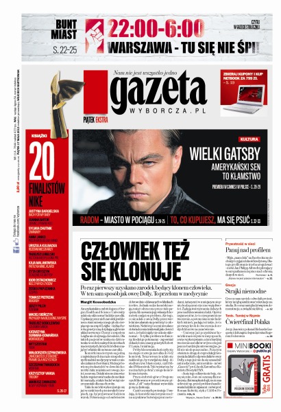 to kiepska wróżba na drugą kadencję; Grecy zmusili nauczycieli, by odwołali strajk; cyklon oszczędził wypędzonych z wiosek Rohingya; czy wkrótce Polskę ogarnie szał remontowy; lista książek nominowanych do 17. edycji Nike – najważniejszej nagrody literackiej w Polsce; ludzkie klony z Ameryki – kontrowersyjne dla świata; w jednej z placówek straży pożarnej w Livermore w Kalifornii nieprzerwanie od 112 lat świeci żarówka; dopóki selekcjonerem będzie Waldemar Fornalik, nie zagram w reprezentacji – ogłosił rozgrywający Bordeaux Ludovic Obraniak; czy Jerzy Janowicz postawi świat na głowie.