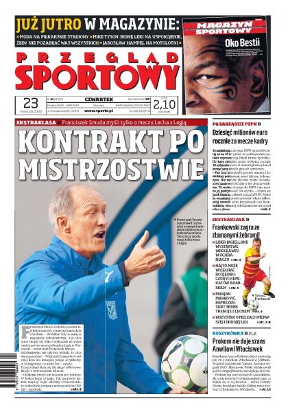 Wywiad z Franciszkiem Smudą, trenerem Lecha Poznań; Piotr Brożek jako jedyny obrońca Wisły nie strzelił wiosną gola i chce to teraz nadrobić; Fabiański chwalony przez prasę, ale to Arszawin został bohaterem; wywiad z atakującym Asseco Resovii, Mikko Oivanenem; Sebastian Ułamek i Grzegorz Walasek wracają do cyklu i chcą walczyć wśród najlepszych żużlowców świata; Walter Hofer chce wyłaniać zwycięzców przy pomocy skomplikowanych obliczeń.