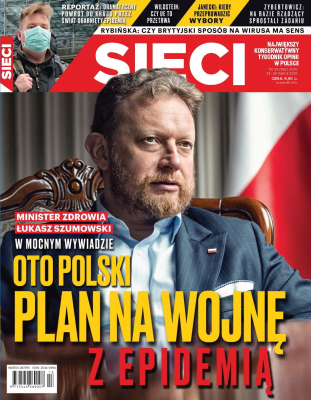 Z prof. Łukaszem Szumowskim, ministrem zdrowia, rozmawia Dorota Łosiewicz; nieoczekiwanie znaleźliśmy się w sytuacji królików doświadczalnych w laboratorium - pandemia jest jak eksperyment bezlitośnie testujący państwa i jednostki; rozmowa z prof. Andrzejem Zybertowiczem, socjologiem, doradcą społecznym prezydenta Andrzeja Dudy; walka bez walki Borisa Johnsona; męczennik, który ostrzegał świat przed wirusem; Kościół w czasach zarazy; w 2036 r. Władimir Putin będzie mieć 84 lata i to wtedy będzie się właśnie kończyć jego szósta (czy ostatnia?) kadencja jako prezydenta Rosji; KGHM odporny na koronawirusa - wspiera rząd i Polaków.