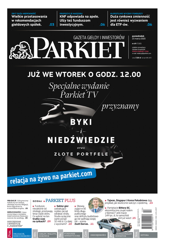 Największy w Polsce newsroom gospodarczy zbiera, analizuje i zgłębia dla Państwa najważniejsze informacje ze świata finansów. Codzienne wydanie „Parkietu”, sześć dni w tygodniu, to kilkadziesiąt artykułów o emitentach, instytucjach finansowych, gospodarce. To również opinie, felietony i wywiady z najważniejszymi ludźmi krajowej i globalnej finansjery.