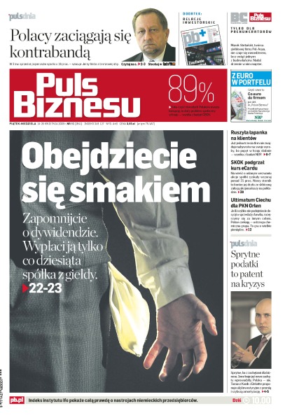 Duży spadek legalnej sprzedaży papierosów – Polacy wybierają kontrabandę, eksperci Deloitte apelują o zmiany w podatkach, co trzecia firma ma kłopoty ze znalezieniem nabywców na swoje towary, skarb państwa sprzedał na aukcji 100% akcji Koltramu, główny akcjonariusz Próchnika otrzymał dwie oferty inwestycyjne, Orlen może stracić kupca na Anwil, niektóre agencje doradztwa personalnego handlują życiorysami, niewiele spółek z GPW wypłaci dywidendy.