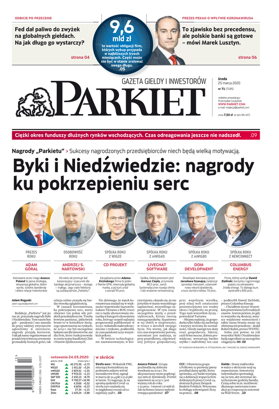 Największy w Polsce newsroom gospodarczy zbiera, analizuje i zgłębia dla Państwa najważniejsze informacje ze świata finansów. Codzienne wydanie „Parkietu”, sześć dni w tygodniu, to kilkadziesiąt artykułów o emitentach, instytucjach finansowych, gospodarce. To również opinie, felietony i wywiady z najważniejszymi ludźmi krajowej i globalnej finansjery.