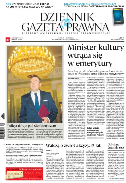 Dziennik Gazeta Prawna – codziennie obiektywne i rzetelne informacje z kraju i ze świata. Piszemy o tym, co dziś ważne i odpowiadamy na Wasze pytania – szczególnie te związane z obecnymi wyzwaniami tj. pandemia, praca zdalna. Na bieżąco wyjaśniamy zmieniające się przepisy. Wspieramy się wyjaśnieniami ministerstw i urzędów. Pomagamy unikać błędów i ostrzegamy, jakie są kary. Ponadto w każdy piątek specjalne magazynowe wydanie Dziennika Gazety Prawnej w całości z tekstami społeczno-ekonomicznymi.